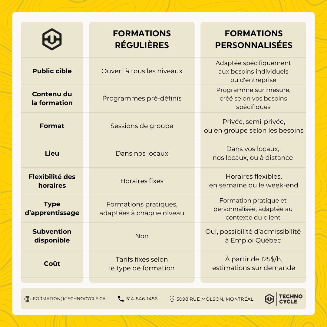un plan de cours adapté à vos besoins spécifiques de formation et de perfectionnement.